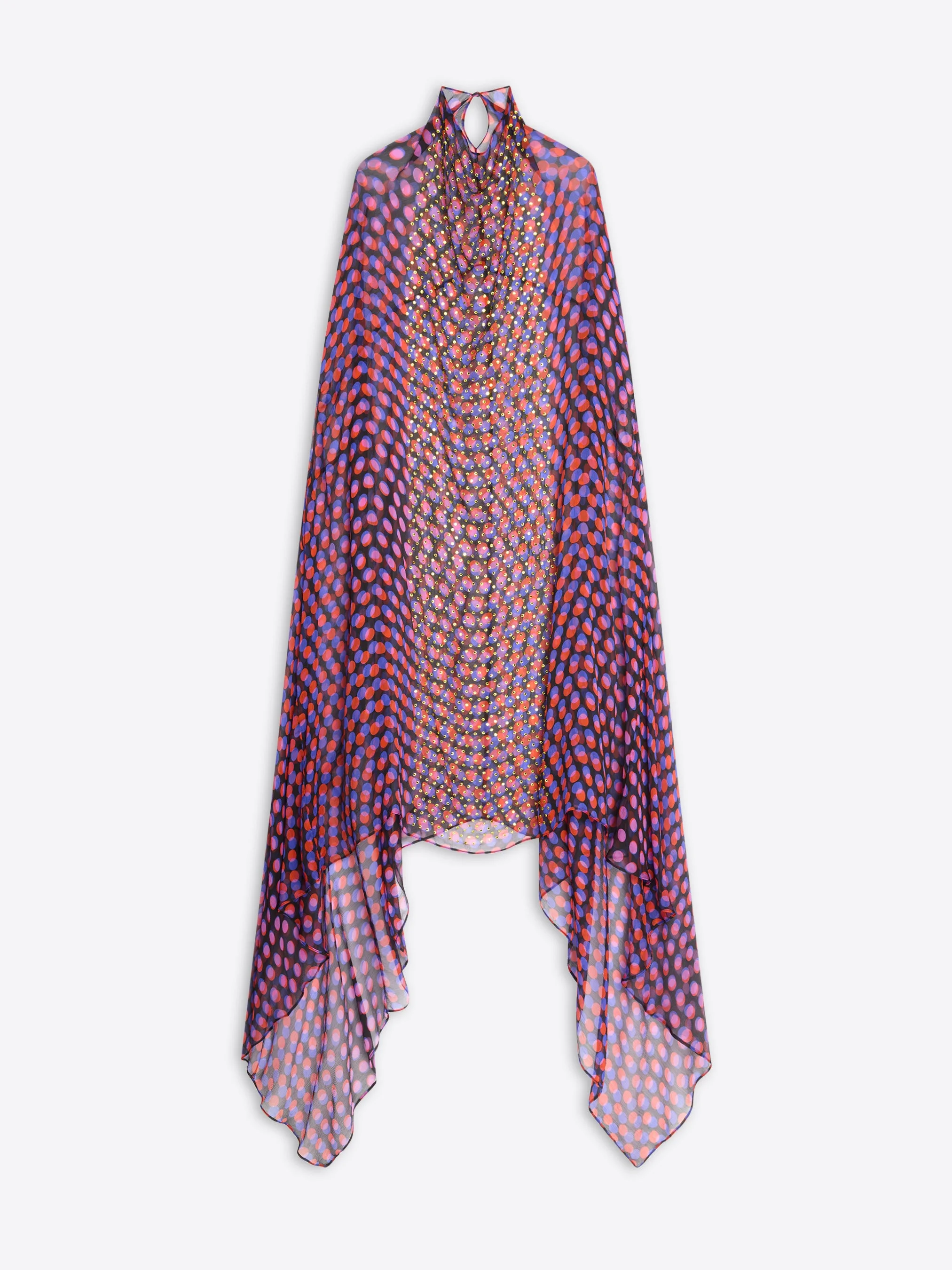 Loose fit cape dress in sheer silk, with high neckline and allover hot fix embroidery. DETAILS - 100% Silk. - Layered Optical Polka Dot print. - Inside buttons on the seams to attach the tails. Button and loop at the neck. - Loose fit. High neckline. Slip-on. - Ref: 261-011011-3094 SIZE AND FIT Model is 178 cm / 70 inches and wears size S.
