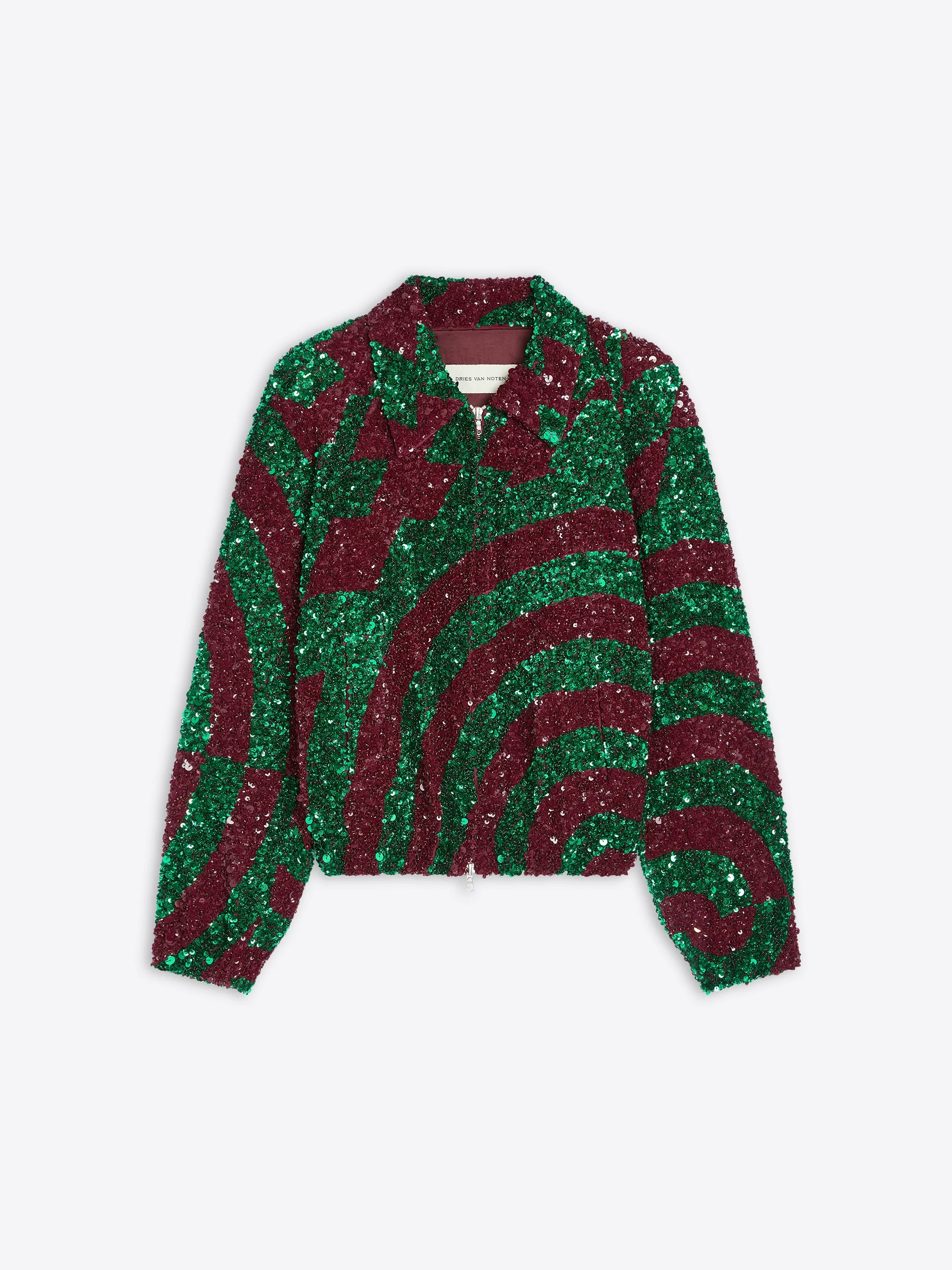 Fitted zipped blouson in viscose, with all-over bicolor sequin embroidery. DETAILS - 100% Viscose. Lining: 100% Cotton. - All-over bicolor sequin embroidery. - Regular fit. Cropped. Classic collar. Elasticated cuffs and waistband. Front double zip closure. - Ref: 261-010549-3396 SIZE AND FIT Model is 178 cm / 70 inches and wears size S.