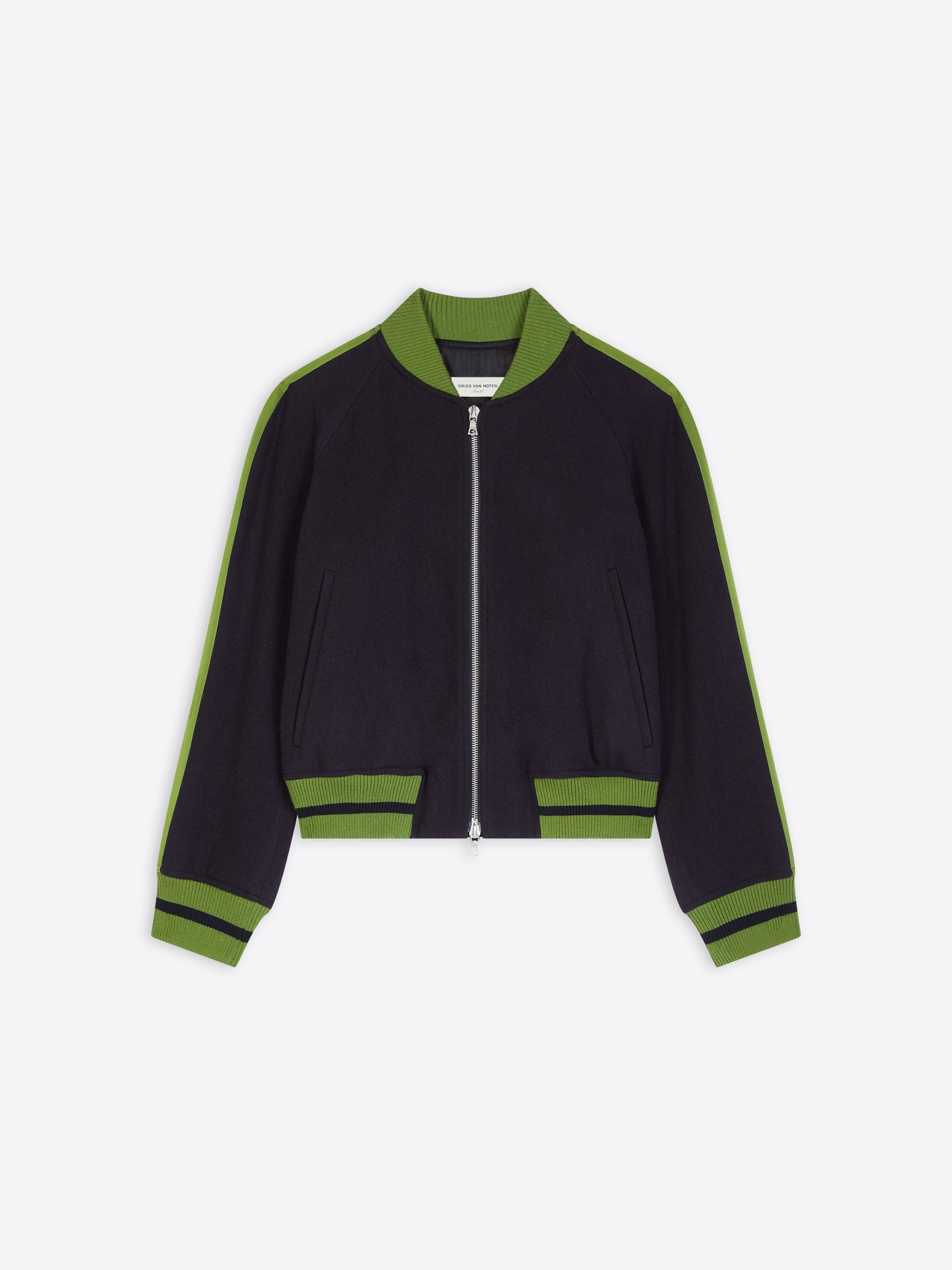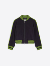 Fitted cropped bomber jacket in wool, with ribbons on sleeve. DETAILS - 94% Wool, 4% Polyamide, 2% Metallic Fiber. Lining: 100% Viscose. - Ribbons on sleeves. - Fitted. Cropped. Elasticated waistband. Front slit pockets. Front two-way zip closure. - Ref: 241-010510-8382 SIZE AND FIT Model is 177 cm / 70 inches and wears size 36.