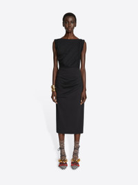 Fitted draped dress in heavy cotton jersey. DETAILS - 100% Cotton. - Tight fit. Knee length. Draped. Sleeveless. Boat neckline and back V neckline. Back zip closure. - Ref: 241-011123-8603 SIZE AND FIT Model is 178 cm / 70 inches and wears size S.