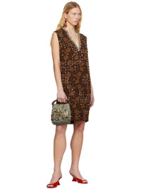 Viscose crepe minidress. Beaded detailing and printed floral pattern throughout. · Plunging V-neck · Silk satin lining Supplier color: Dark brown Body: 100% viscose. Lining: 100% silk. Made in India 251358F052000