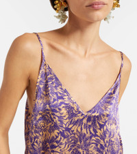Dries Van Noten's prints are often abstract, overtly maximalist, and always one-of-a-kind. This floral silk camisole is a fine example, where the opulent, all-over pattern complements a minimalist design with slender straps. Product Details - Material: 100% silk - Care instructions: dry clean - Made in Bulgaria - Designer color name: Peach - Item color: purple, beige - Item number: P01106633 Size & Fit - True to size - Straight fit - Non-stretchy fabric - Falls to the hip - The model seen in the picture is 178cm-5'10" and wearing a size FR 36