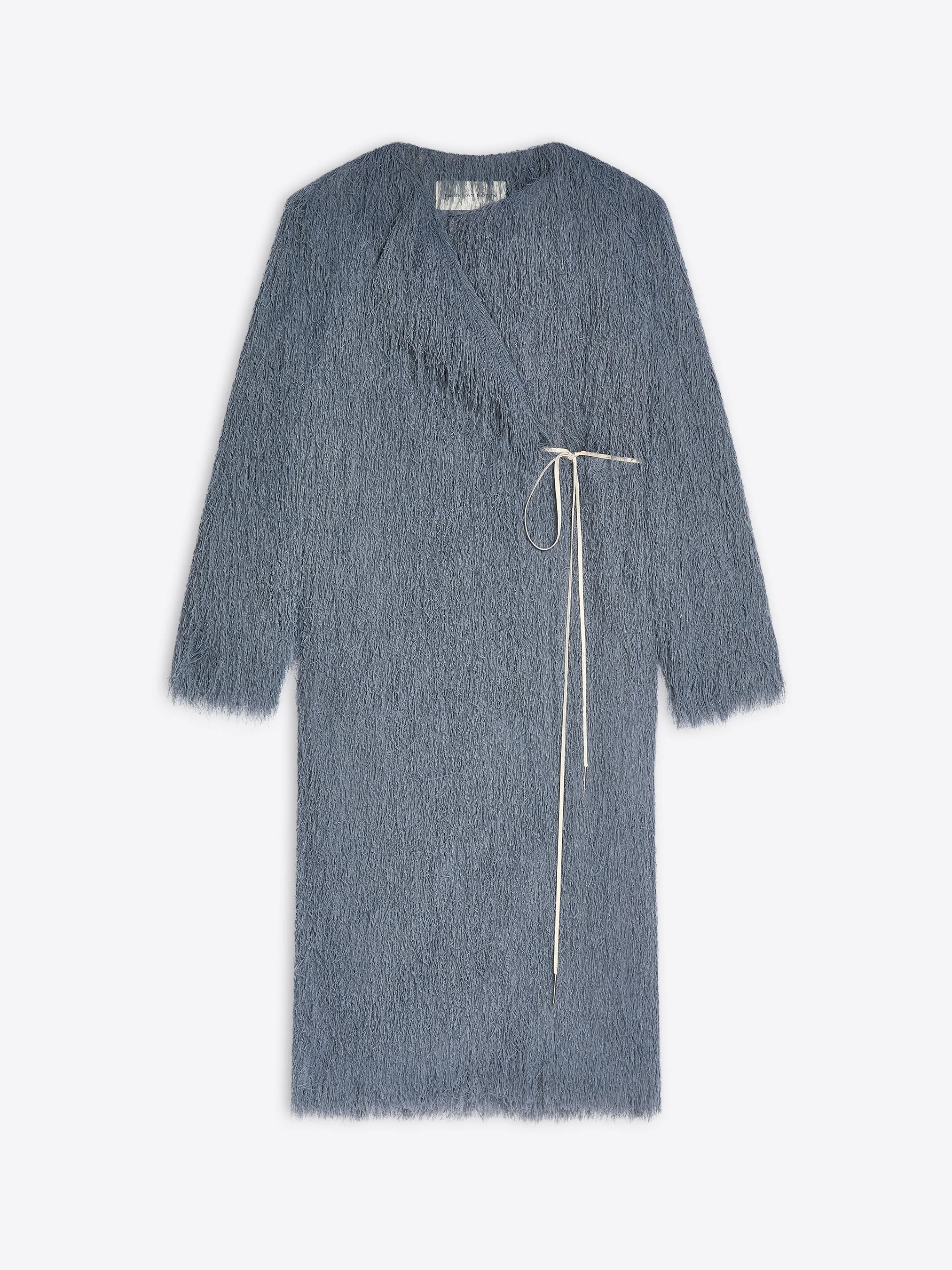 Long collarless fringed coat with lace closure. DETAILS - 100% Polyester. Lining: 100% Viscose. - Lightweight fringed fabric. - Regular fit. Lined. Side slit pockets. Front tie closure. - Ref: 252-010262-2031 SIZE AND FIT Model is 178 cm / 70 inches and wears size M.