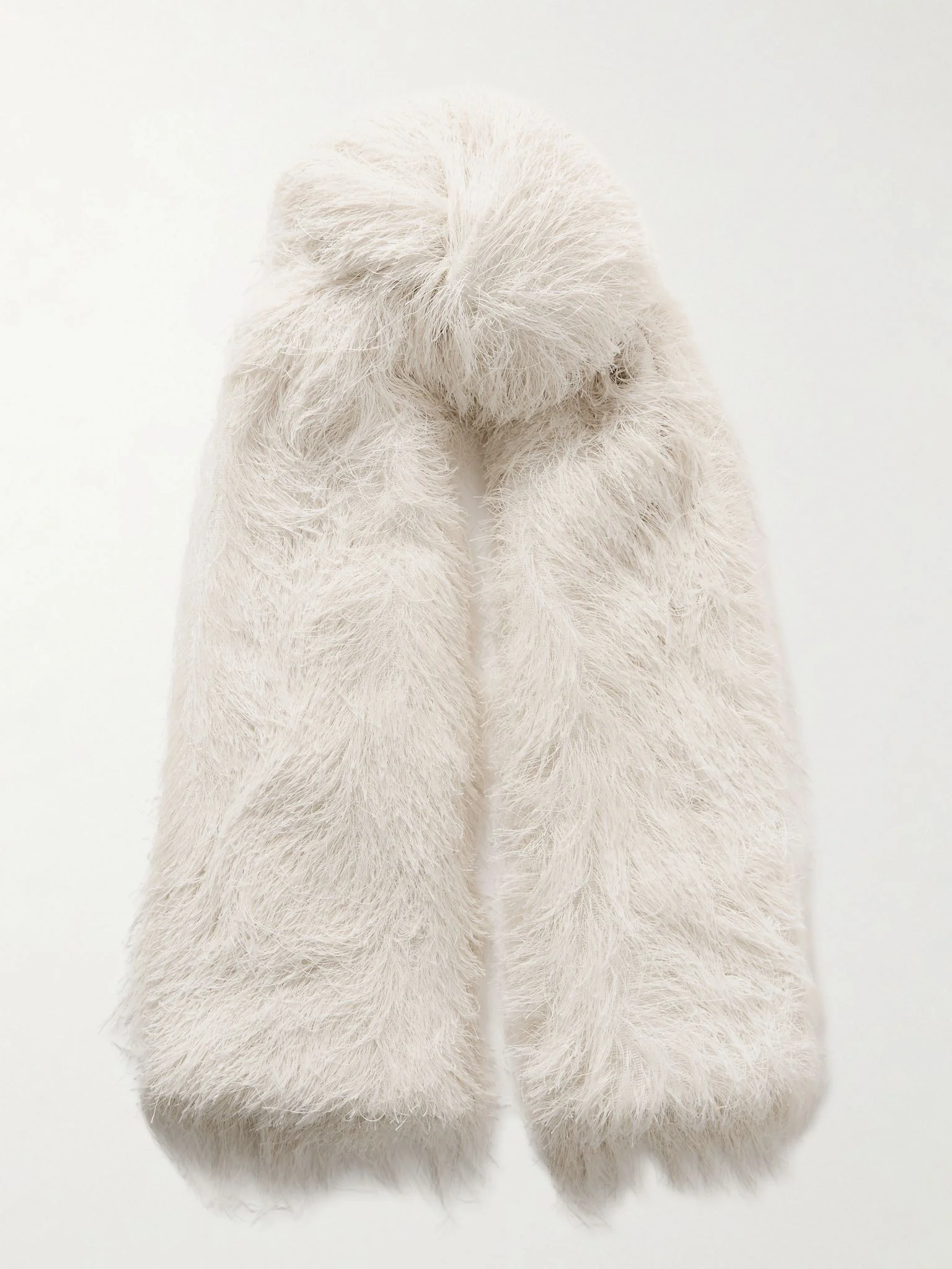 As well as print, Dries Van Noten loves to play with texture. This knitted scarf is covered with soft, wispy fringes - the oversized shape is perfect for bundling up. Details & Care - Off-white polyester - 100% polyester - Machine wash
