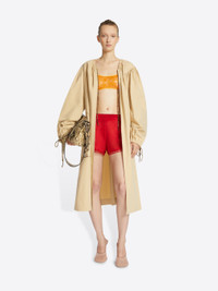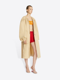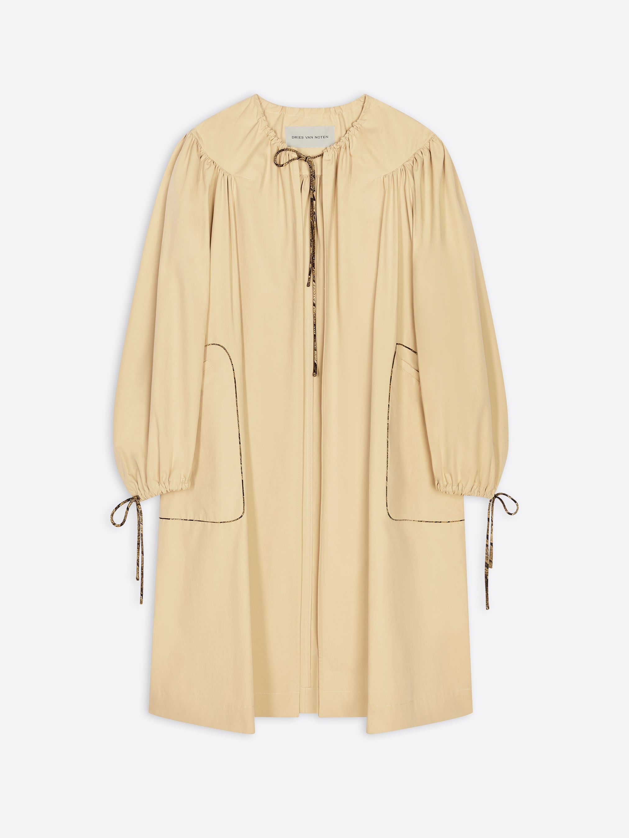 Loose fit unconstructed coat with drawstring gathering details and fabric-covered snaps, in washed cotton poplin. DETAILS - 100% Cotton Poplin. - Jacquard snakeskin piping. - Loose fit. Knee length. Unconstructed. Front slit pockets. Drawstring cuffs and neckline. - Ref: 251-010201-1449 SIZE AND FIT Model is 179 cm / 70.5 inches and wears size M.