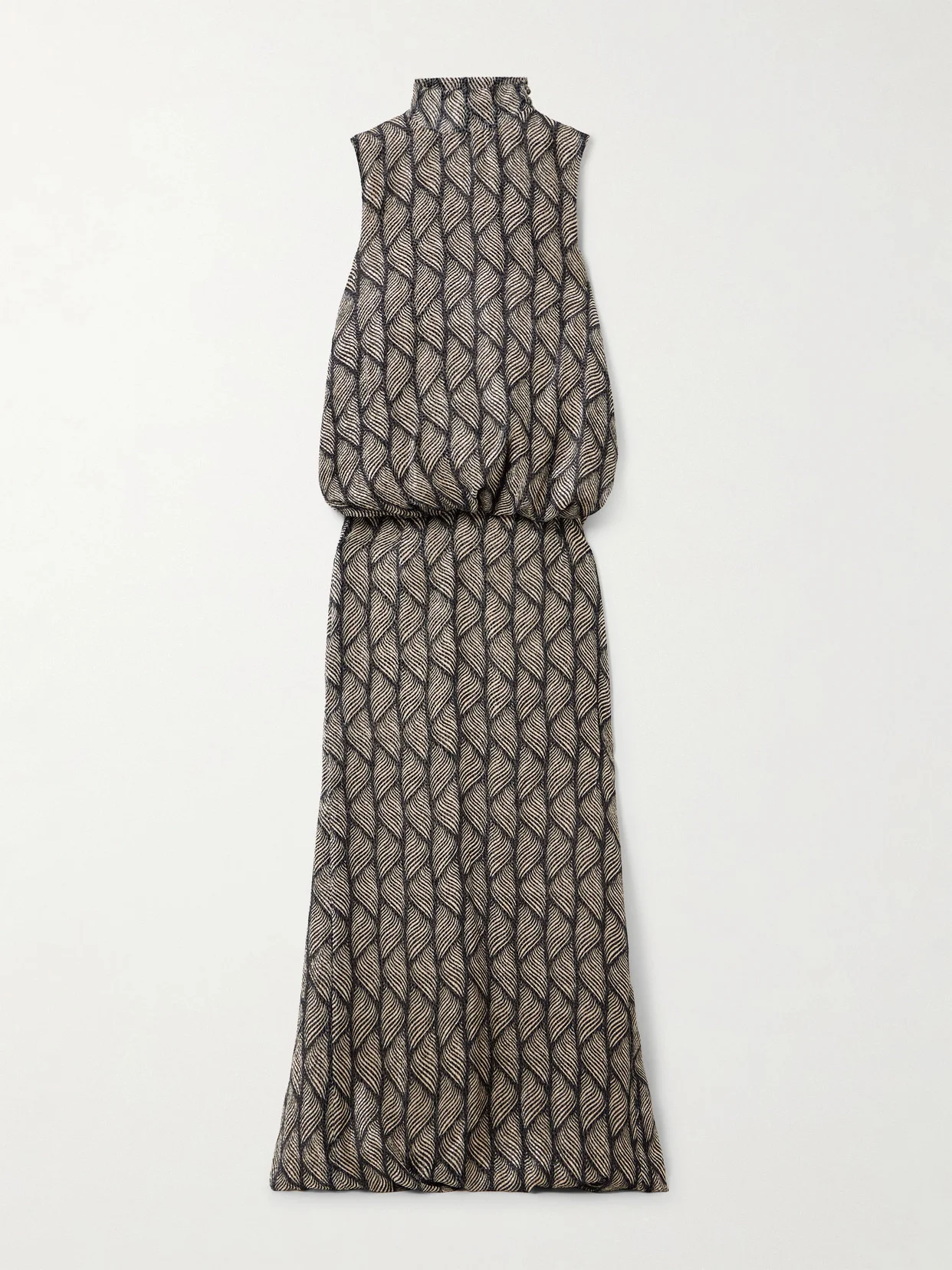 It's the stunning devore-velvet fabric that makes Dries Van Noten's gown so special. Patterned with layered waves, it has a high-neck bodice that folds over at the waist, so it looks like perfectly put-together separates. Wear yours with point-toe mules.