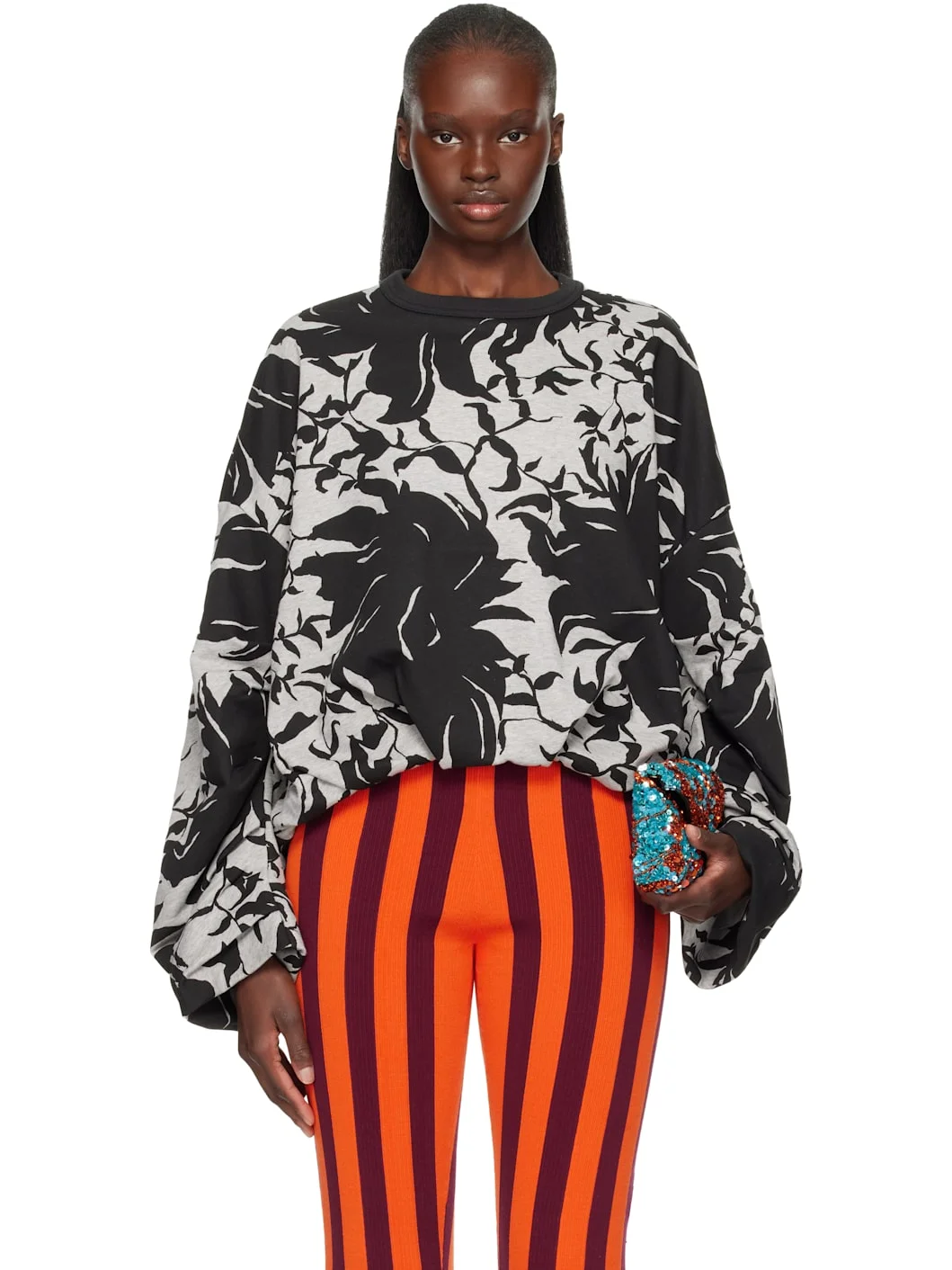 Cotton jersey sweatshirt. · Graphic pattern printed throughout · Rib-knit crewneck · Gathering and draping at bubble hem and sleeves · Dropped shoulders · Jersey lining Supplier color: Grey Melange 100% cotton. Made in Turkey 261358F098006