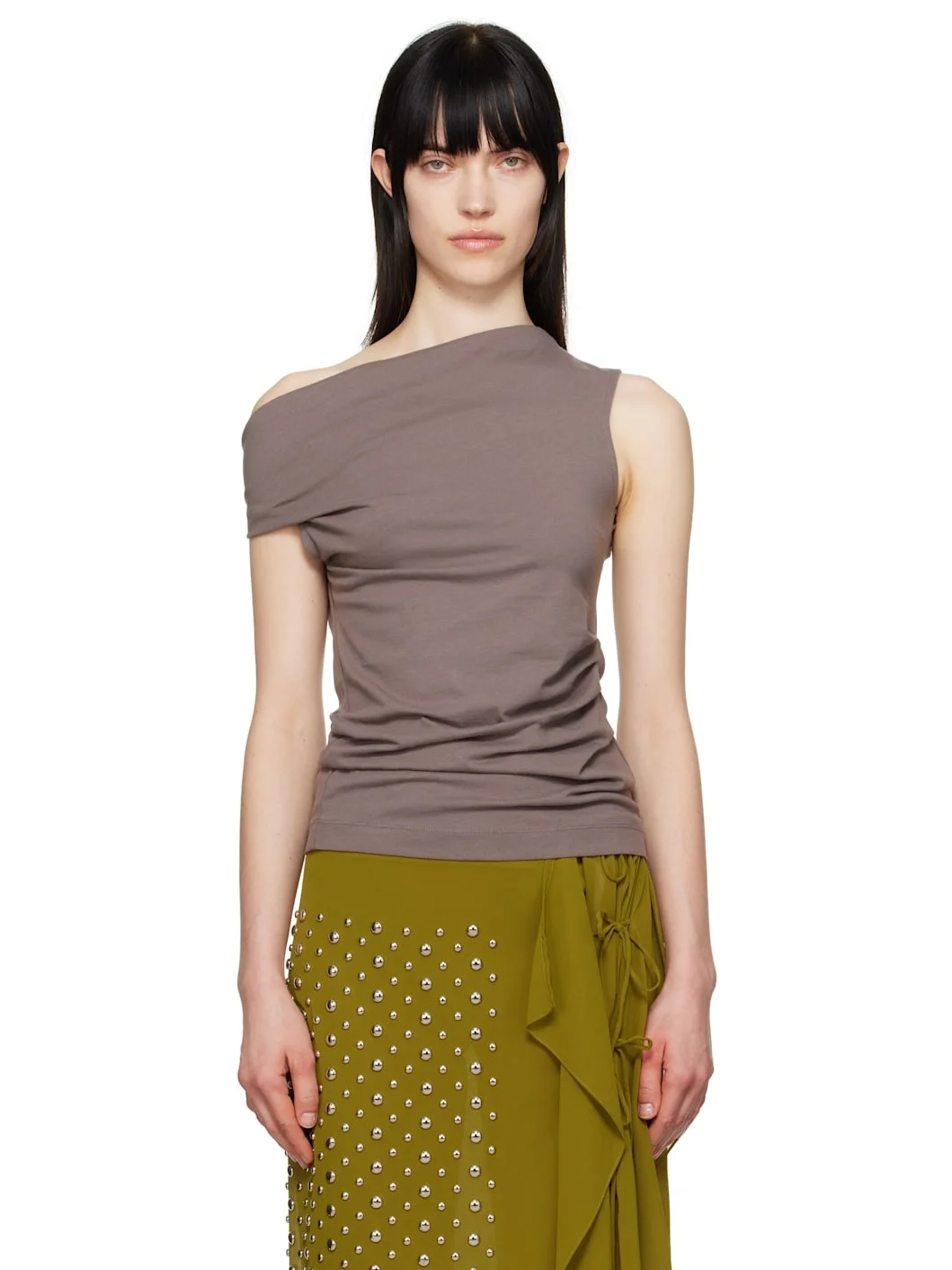 Heavyweight cotton jersey tank top. Draping throughout. · Off-the-shoulder construction · Asymmetrical hem · Pleats at side seam Supplier color: Smoke 100% cotton. Made in Turkey 251358F111009