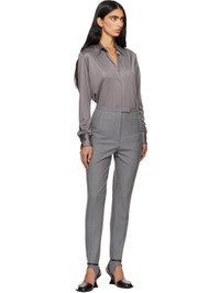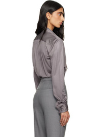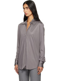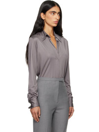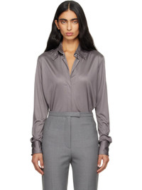 Viscose satin shirt. · Open spread collar · Plunging V-neck · Central vent at front hem · Buttoned barrel cuffs Supplier color: Dark grey 100% viscose. Made in Portugal 252358F109005