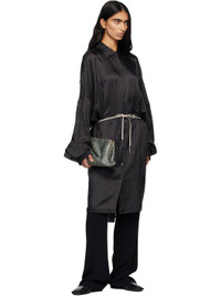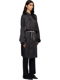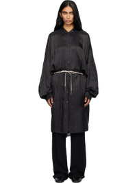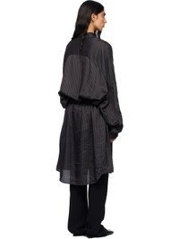 Cupro satin midi dress. · Stripes throughout · Spread collar · Button closure · Drawstring at waist · Droptail hem · Dropped shoulders · Adjustable buttoned barrel cuffs Supplier color: Grey 100% cupro. Made in Poland 252358F054010