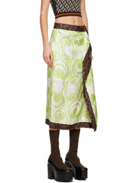 Silk twill and satin skirt. Draping and graphic pattern printed throughout. · Concealed zip closure at front · Extended trim at front · Vented hem · Partial silk satin lining Supplier color: Light green