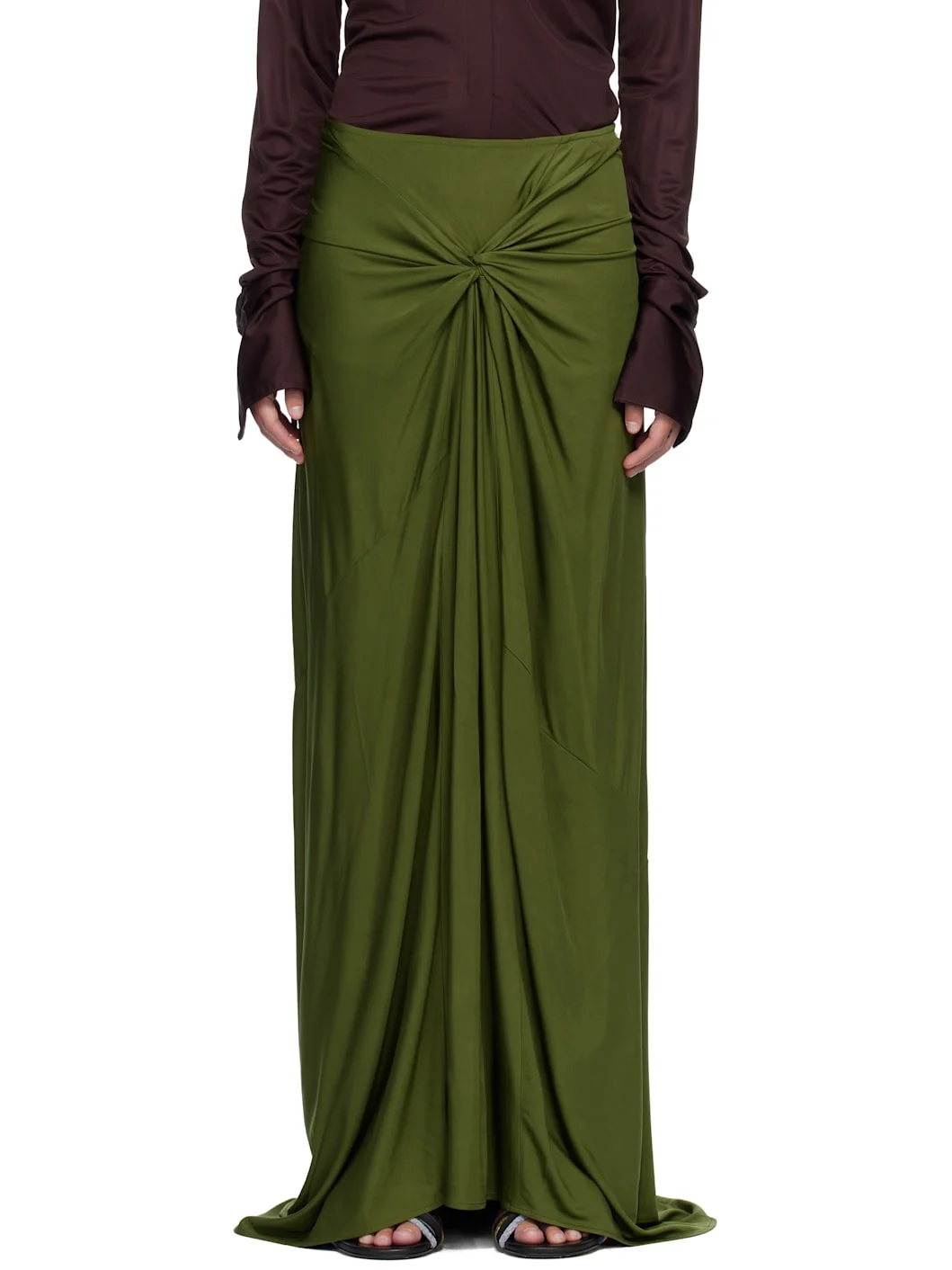 Viscose jersey maxi skirt. · Draping throughout · Knotted detailing at front · Asymmetrical hem · Concealed zip closure at back waistband Supplier color: Green 100% viscose. Made in Portugal 252358F093000