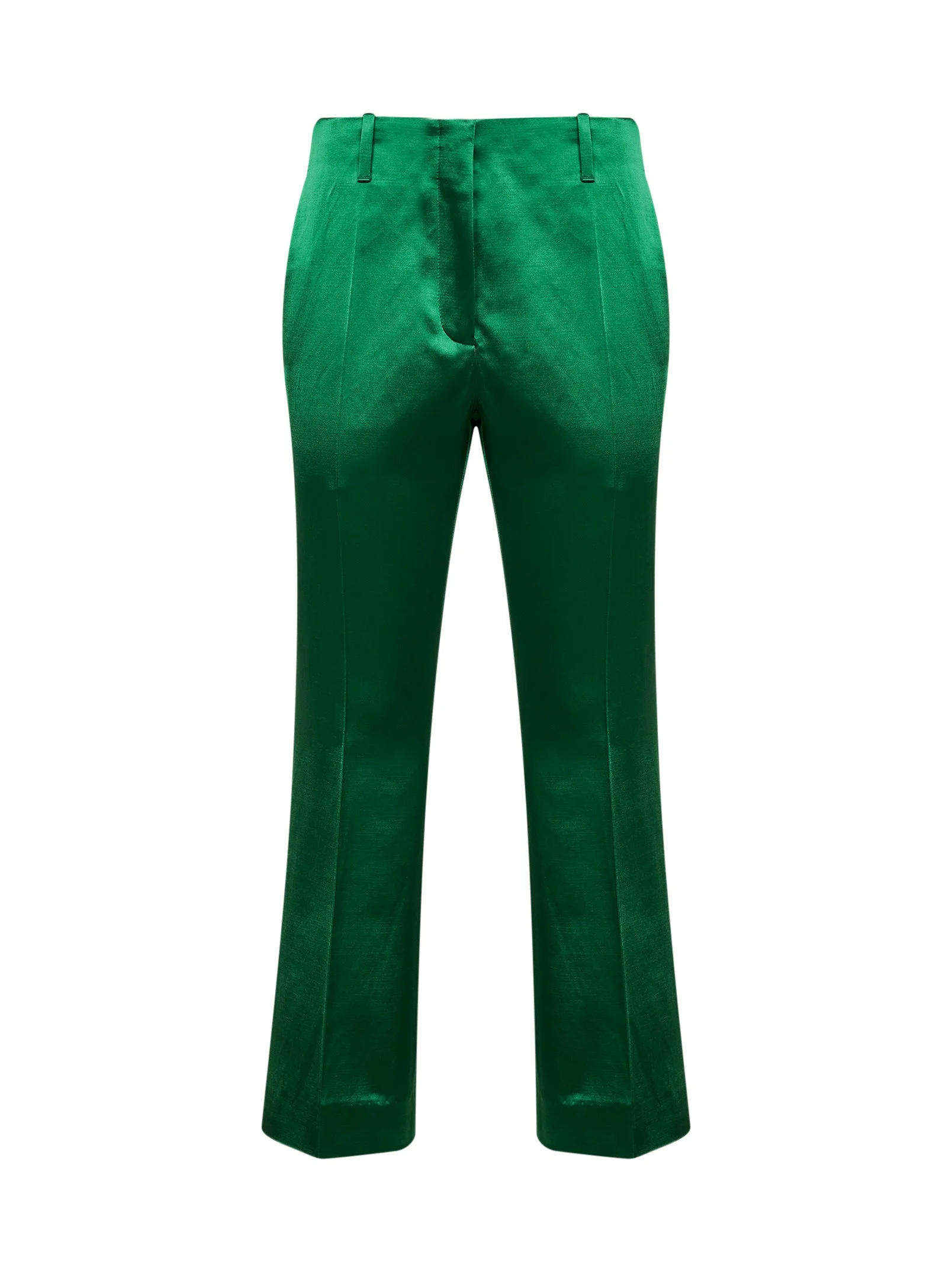 Green satin bootcut trousers