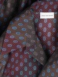 HABOTAI DRIES VAN NOTEN MULTICOLOR SILK BLOUSE WITH ALL-OVER CONTRAST PATTERN, COLLAR, FRONT DRAPING DETAIL, DRAWSTRING AT ADJUSTABLE HEM, BUTTON CUFFS, STRAIGHT HEM. PRODUCT INFO PRODUCT CODE 010702 2127358 COMPOSITION: 100% SILK SIZE AND FIT: SOFT FIT MADE IN: HUNGARY