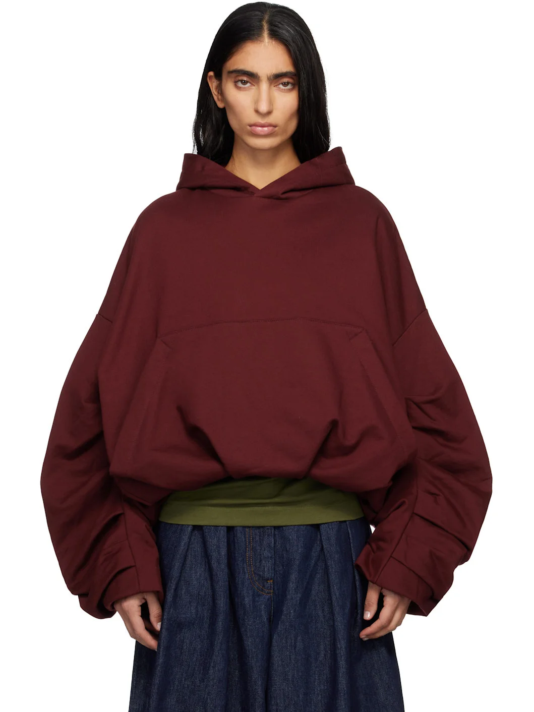 Oversized cotton jersey hoodie. · Kangaroo pocket · Pleats at bubble hem · Dropped shoulders · Gathering at sleeves · Full jersey lining Supplier color: Ruby 100% cotton. Made in Turkey 252358F097000