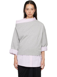 Cotton jersey and poplin T-shirt. Check pattern throughout. · Asymmetric and layered construction · Boat neck · Three-button placket at shirttail hem · Rolled cuffs Supplier color: Grey melange 100% cotton. Made in Turkey 242358F110000