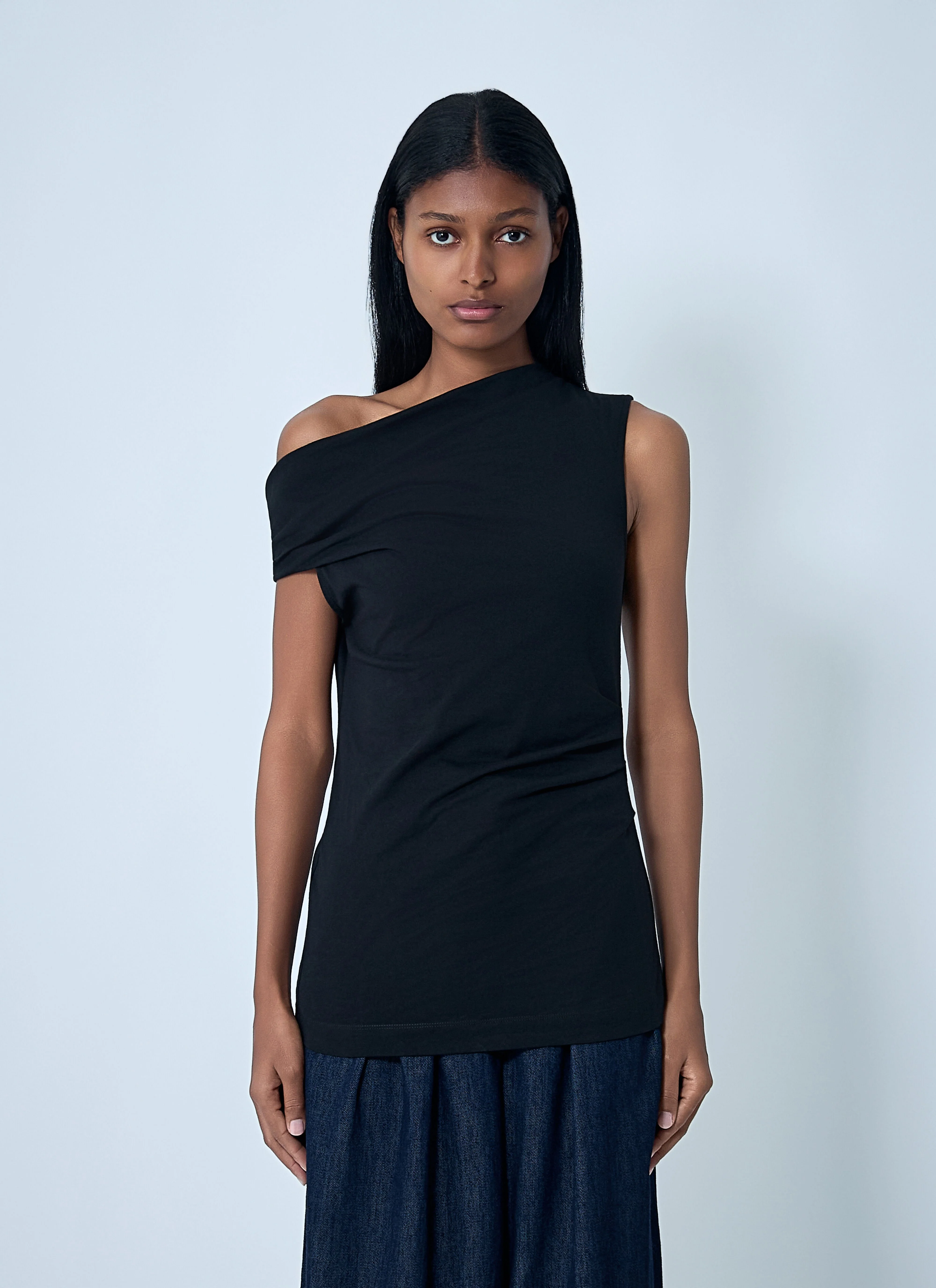 Henray top in smooth weave. - Off-the-shoulder neckline - Short sleeves - Straight hem - 100% Cotton. Machine wash cold - Color: Black - Code: 252-011111-2603-900