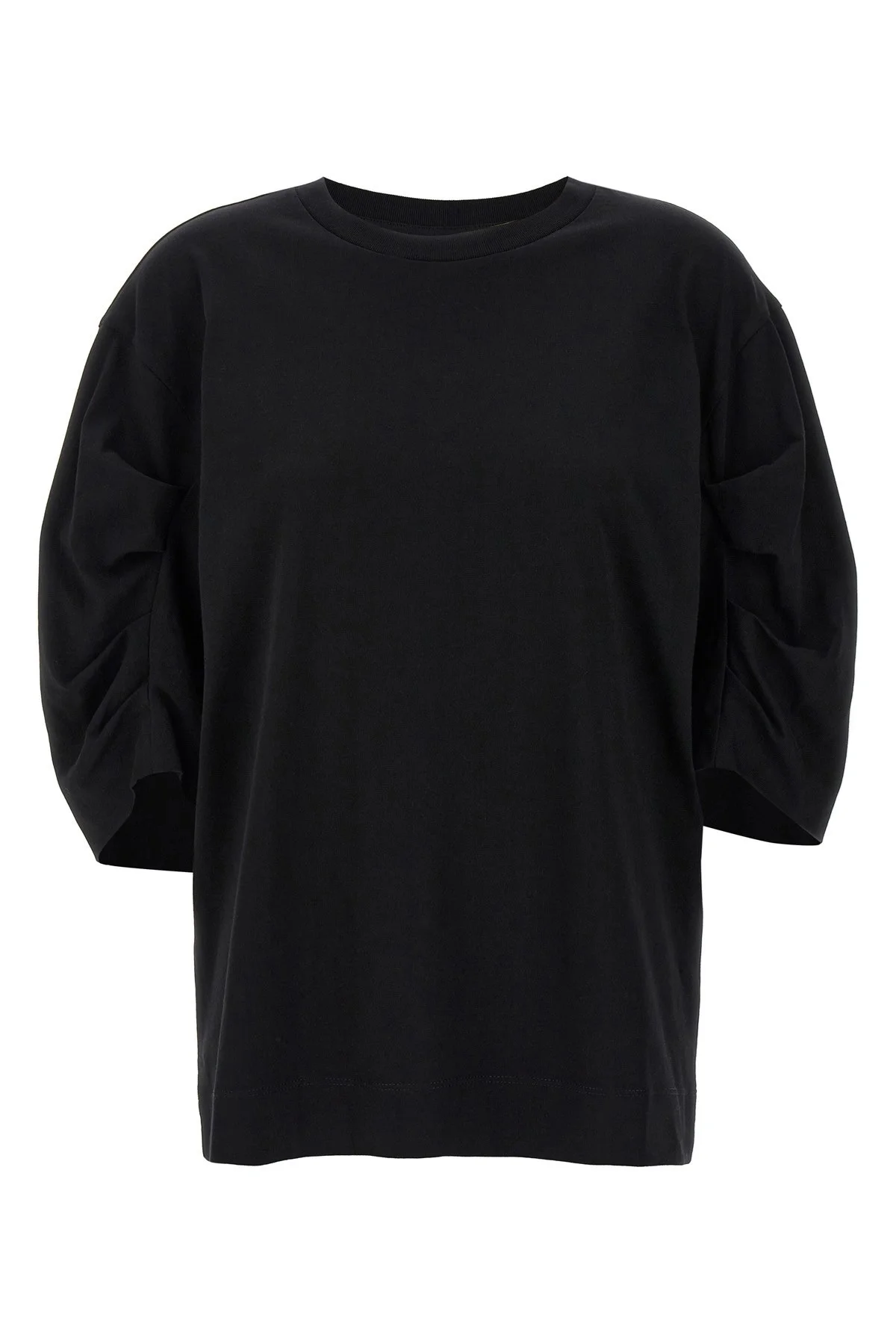 cod. 2510111411603900 'Heynet' cotton crew neck t-shirt with slightly loose fit, 3/4 sleeves with pleated detail. Color: Black Size & Fit: True to size fit Composition: 100% cotton Made in: Turkey
