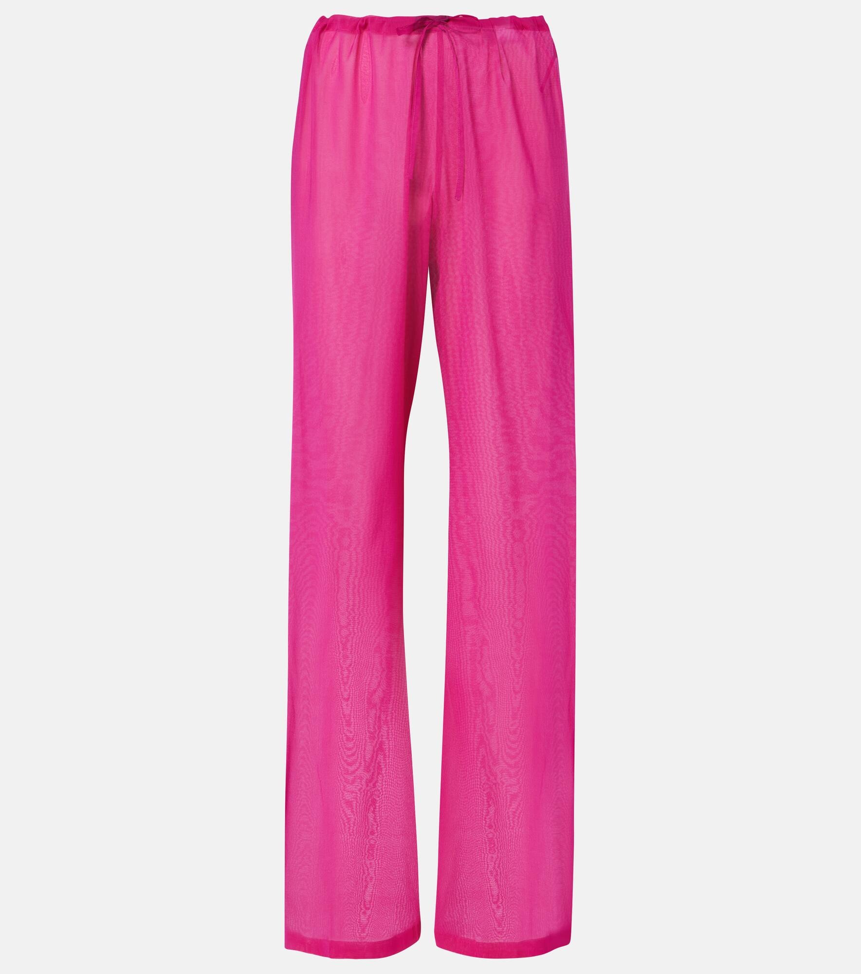 Product Details - Material: 94% silk, 6% elastane - Care instructions: dry clean - Made in Tunisia - Designer color name: Fuchsia - Item color: pink - Self-tie belt - Item number: P01030460 Size & Fit - True to size - Semi-sheer - Adjustable at the waist - Non-stretchy fabric - Straight leg - The model seen in the picture is 178cm-5'10" and wearing a size FR 36