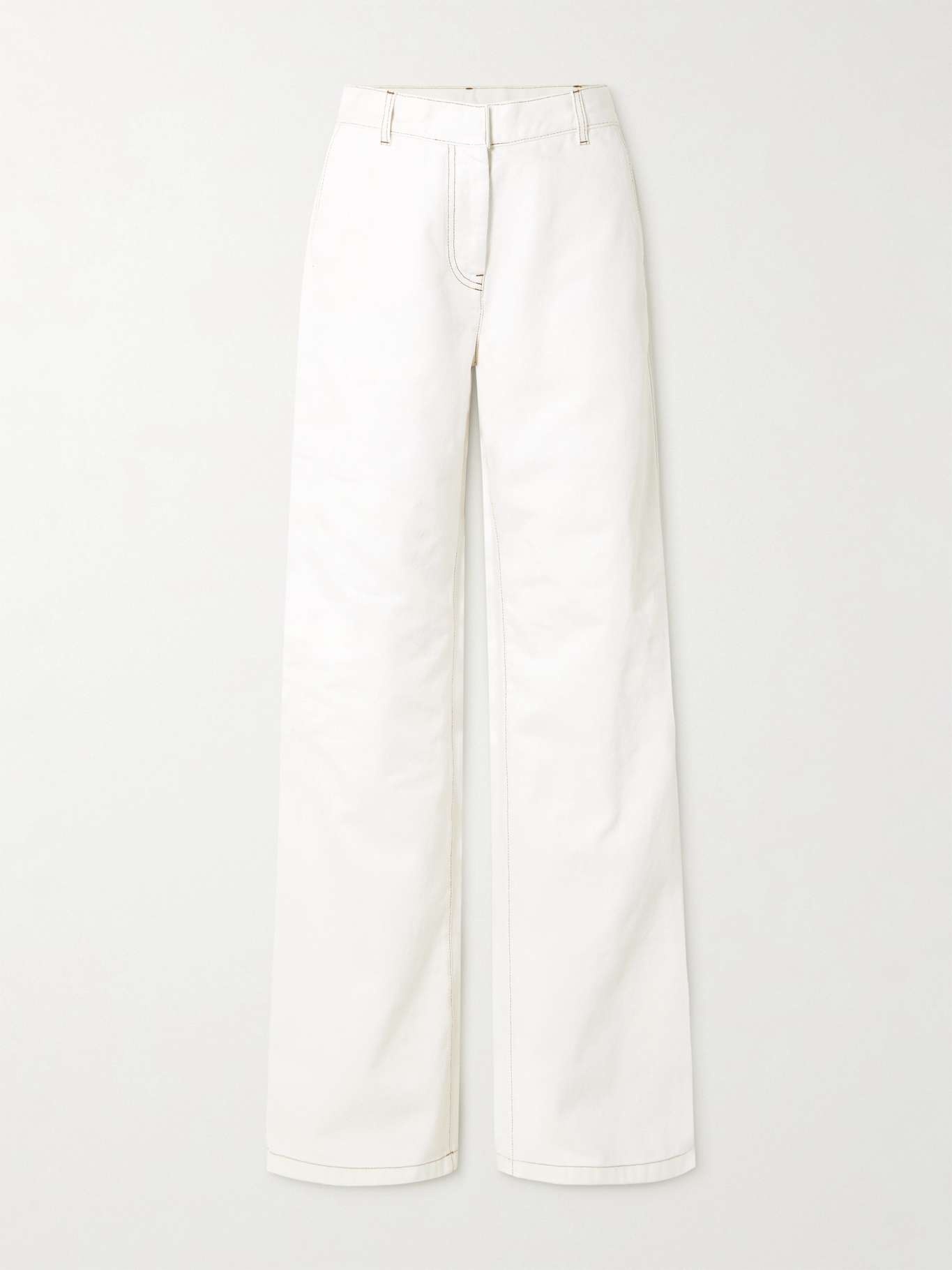 The understated design and versatile shade of Dries Van Noten's jeans make them the kind of style you'll wear on repeat. Made from sturdy denim, they have wide legs and sit high on the waist. Wear yours year-round with shirts, tees and sweaters alike. Size & Fit - Fits true to size, take your normal size - High-rise, designed for a wide-leg fit - Mid-weight, non-stretchy denim - Size FR 36 jeans have an inside leg of 34.5"/ 86cm - Model is 180cm/ 5'11" and is wearing a FR 36 Model measurements: - Bust: 78cm/ 31" - Waist: 65cm/ 25.5" - Hip: 90cm/ 35.5” Details & Care - White denim - Concealed button, hook and zip fastening at front - 100% cotton
