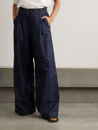 EDITORS'NOTES Dries Van Noten’s 'Pila' jeans are such a comfortable choice thanks to the elasticated waist. They're cut from denim for a wide-leg profile and fall to floor-pooling hems. Wear yours with a tonal shirt or classic white tee. SIZE & FIT - Fits large to size, take one size smaller than normal - High-rise, designed for a wide-leg fit - Elasticated at the waist for a flexible fit - Mid-weight, non-stretchy denim - S/M/L sizing DETAILS & CARE - Navy denim - Pull on - 100% cotton - Machine wash Large to size. See Size & Fit notes.