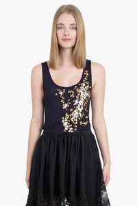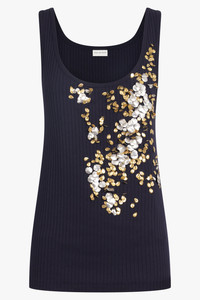 HOLLY EMBROIDERED KNIT SINGLET | NAVY/GOLD/SILVER