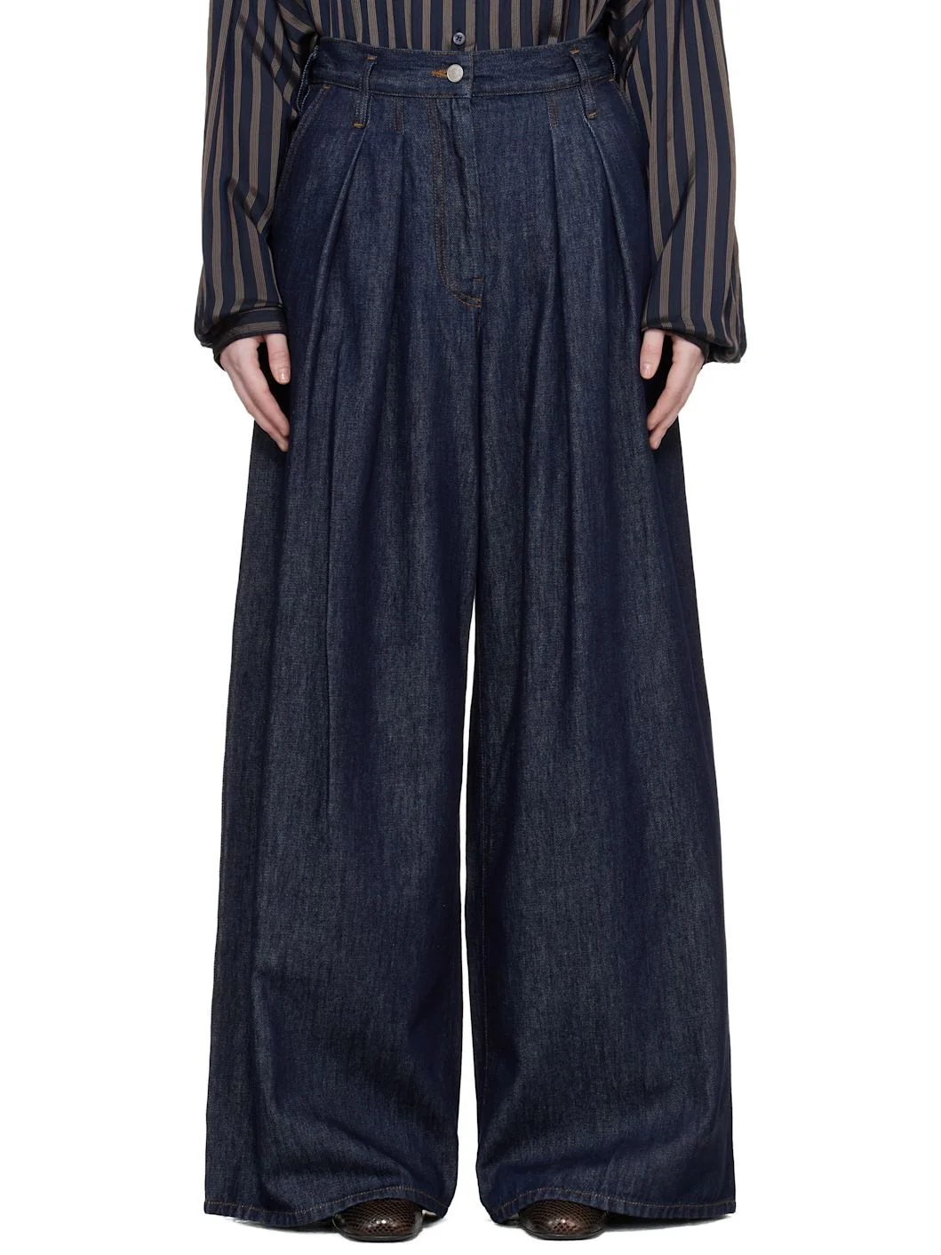 Non-stretch denim jeans. · Wide-leg · Belt loops · Two-pocket styling · Zip fly · Pleats at front · Logo patch at back waistband · Contrast stitching in tan Supplier color: Indigo 100% cotton. Made in Tunisia 261358F069004