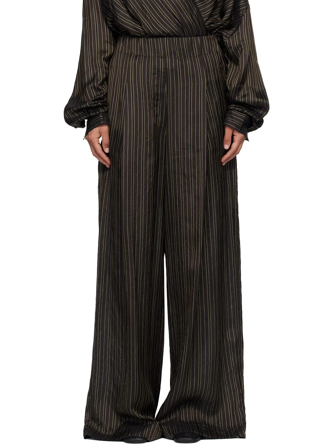 Cupro satin trousers. · Stripes throughout · Drawstring at elasticized waistband · Three-pocket styling · Pleats at front Supplier color: Brown 100% cupro. Made in Tunisia 252358F087033
