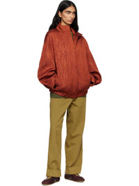 Coated matelasse jacket. · Stand collar · Zip closure · Seam pockets at waist · Elasticized hem · Dropped shoulders · Pleats at cuffs · Full satin lining Supplier color: Rust Body: 70% polyester, 30% polyurethane. Lining: 64% viscose, 36% cotton. Made in Bulgaria 252358F063006