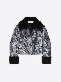 Regular fit bomber jacket with shearling collar and cuffs, in abstract floral jacquard. DETAILS - 100% Polyester. Lining: 64% Viscose, 36% Cotton. - Abstract floral jacquard. - Boxy fit. Long sleeves. Front flap pockets. Front closure. - Ref: 252-110546-2034 SIZE AND FIT Model is 178 cm / 70 inches and wears size M.