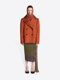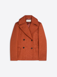 Oversized fit double-breasted caban jacket with pleated sculptural back panel, in abstract swirl embossed jacquard. DETAILS - 70% Polyester, 30% Polyurethane Fiber. Lining: 64% Viscose, 36% Cotton. - Abstract swirl embossed jacquard. - Oversized fit. Double breasted. Front flap pockets. Back box pleat - Ref: 252-010540-2162 SIZE AND FIT Model is 178 cm / 70 inches and wears size M.
