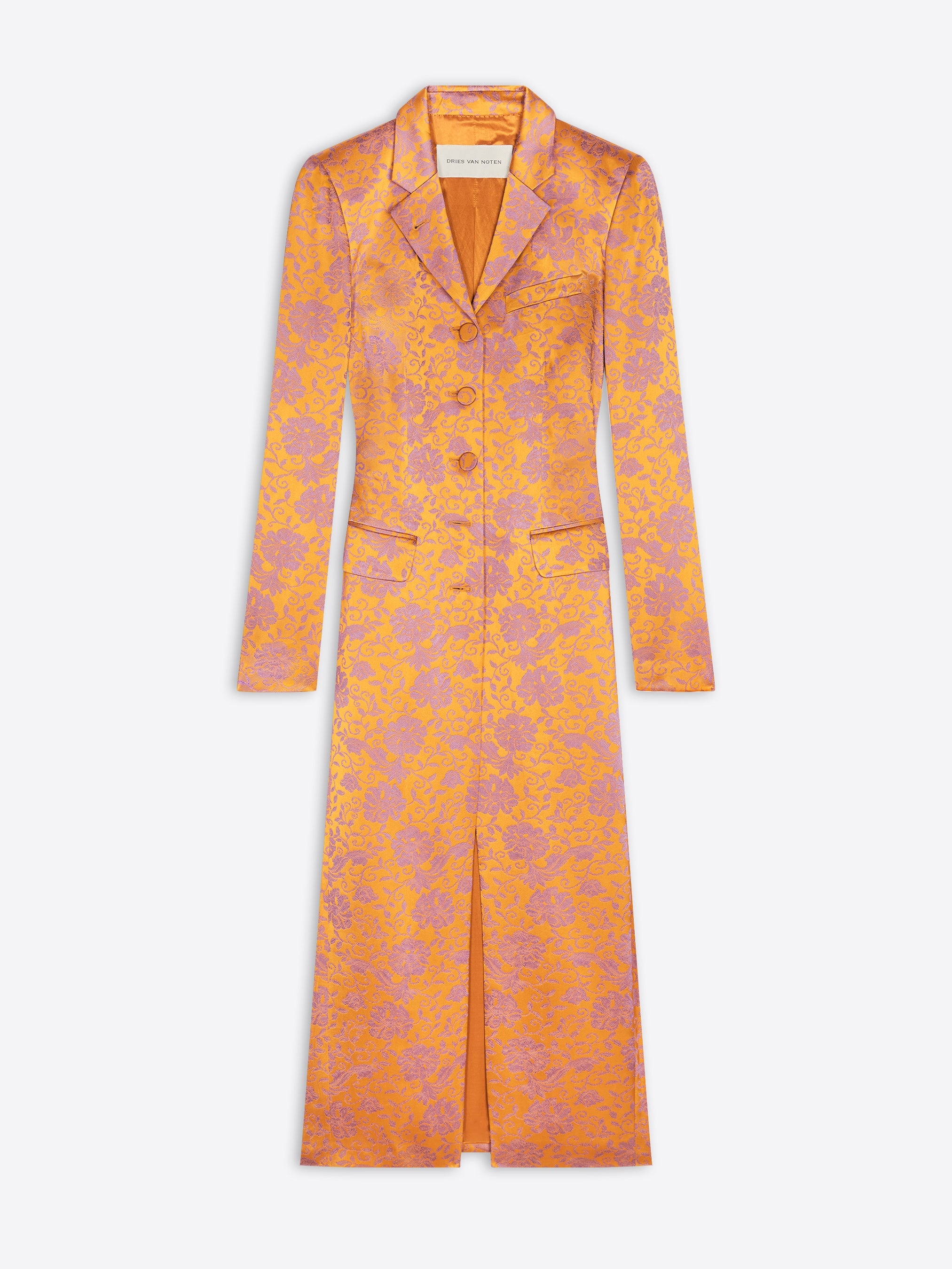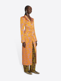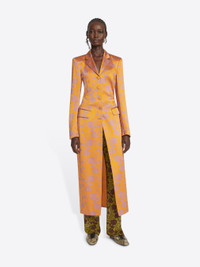 Long fitted coat with gathering detail and adjustable belt in the back, in double-dye Archive 1997 woven jacquard. DETAILS - 62% Viscose, 38% Acetate. - Archive 1997 woven jacquard. - Fitted. Single-breasted. Front flap pockets. Adjustable belt. Front fabric-covered button closure. - Ref: 251-010206-1224 SIZE AND FIT Model is 178 cm / 70 inches and wears size 36.