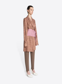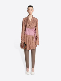 Loose fit draped robe-like top in viscose silk jacquard, with topstitched tie belt and Pyjama motif. DETAILS - 83% Viscose, 17% Silk. - Pyjama motif. - Loose fit. Buttoned cuffs. Topstitched belt. Front tie closure. - Ref: 252-010773-2334 SIZE AND FIT Model is 178 cm / 70 inches and wears size 36.