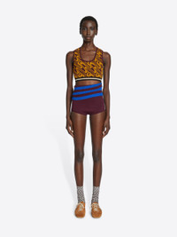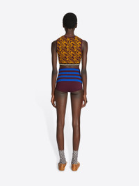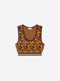 Fitted cropped top in viscose merino wool blend, with swirly jacquard motif. DETAILS - 44% Viscose, 38% Merino Wool, 18% Polyester. - Bicolor swirly jacquard motif. Contrast rib borders. - Tight fit. Cropped. Sleeveless. - Ref: 241-011224-8725 SIZE AND FIT Model is 180 cm / 71 inches and wears size S.