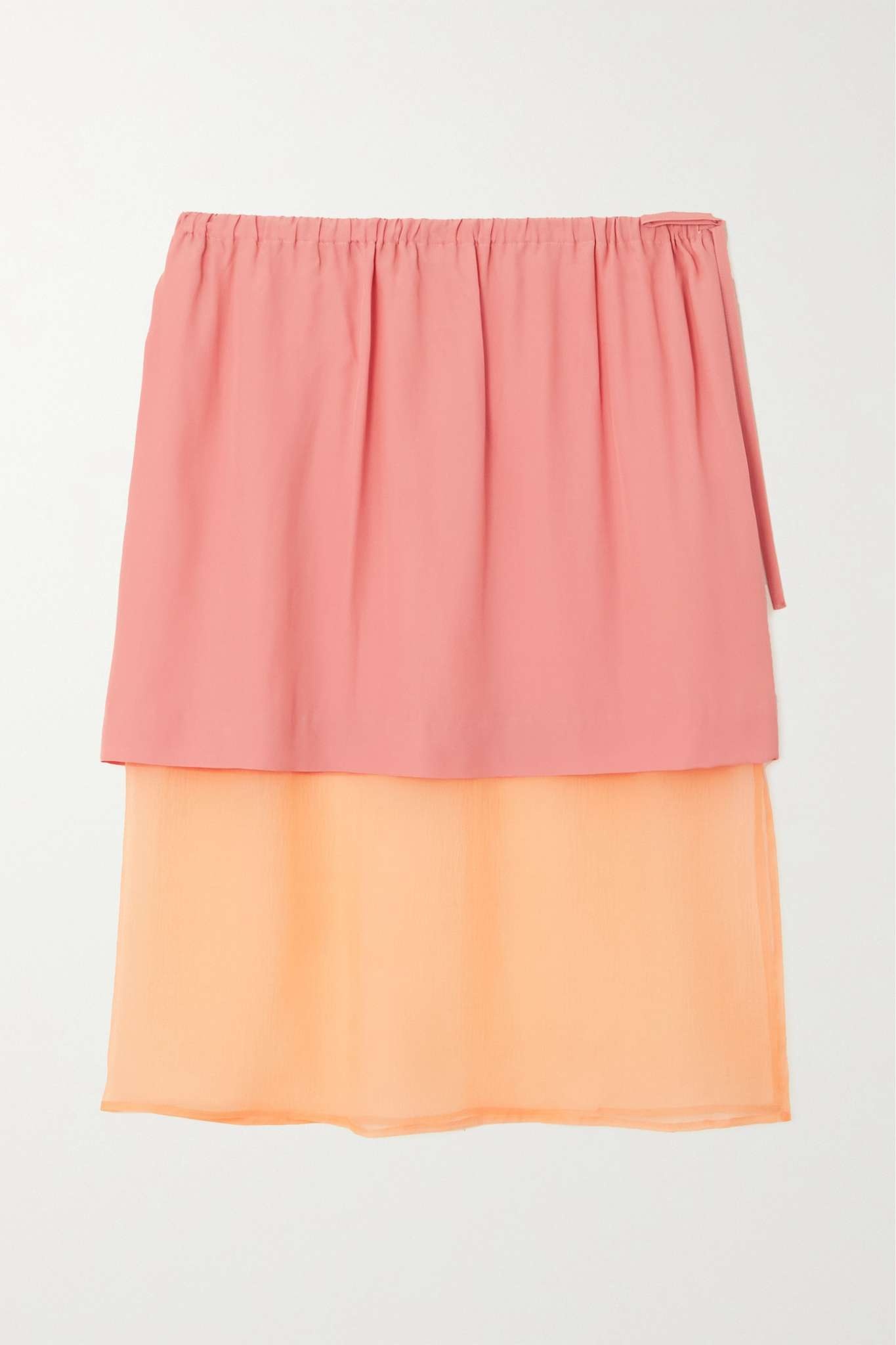 Layered wrap-effect crepe and chiffon midi skirt