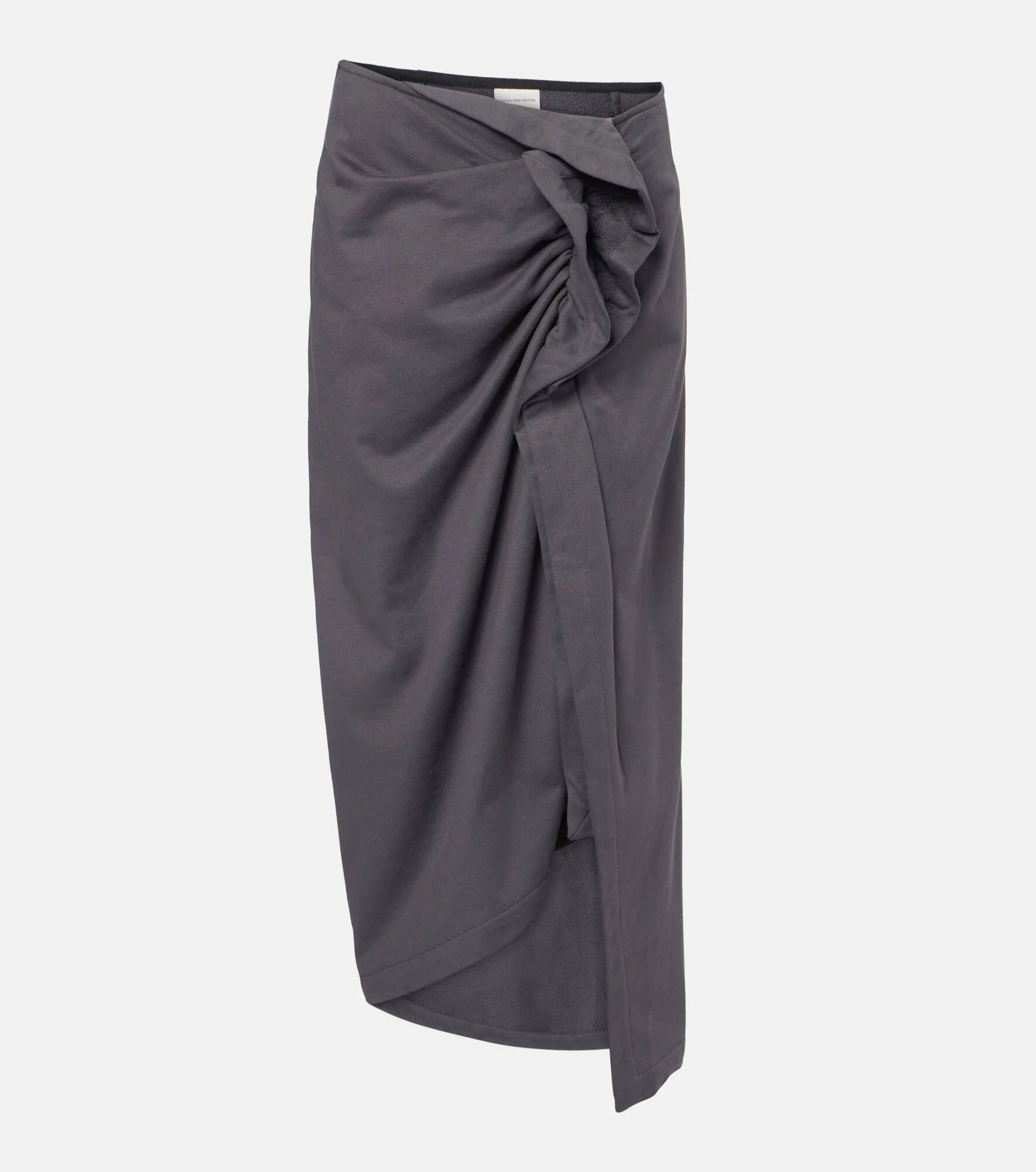 This midi skirt from Dries Van Noten captures the brand’s modern, expressive aesthetic. Versatile enough for the office, dinner, and beyond, the style is detailed with a gathered ruffle, soft draping, and a concealed zip closure. Product Details - Material: 100% cotton - Care instructions: machine wash at 30 degrees - Made in Turkey - Designer color name: Dark Grey - Item color: gray - Closure: concealed zipped side - Item number: P01092189 Size & Fit - True to size - Slightly stretchy fabric - The model seen in the picture is 178cm-5'10" and wearing a size FR 36