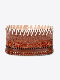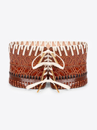 Corset belt in embossed leather, with whip stitch embellishments. DETAILS - 98% Leather, 2% Cotton. - Back tie closure. - Ref: 252-011400-595 SIZE AND FIT Model is 178 cm / 70 inches and wears size 75.