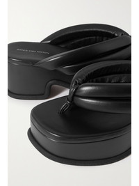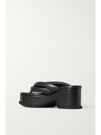 Reflecting Dries Van Noten's affinity for distinctive shapes, these sandals are sculpted from black leather and set on chunky platform soles. The double straps are padded to give them a comfortable puffy finish. Size & Fit - Fits true to size, take your normal size - Italian sizing Details & Care - Heel measures approximately 70mm/ 3 inches with a 20mm/ 1 inch platform - Black leather (Sheep) - Slip on