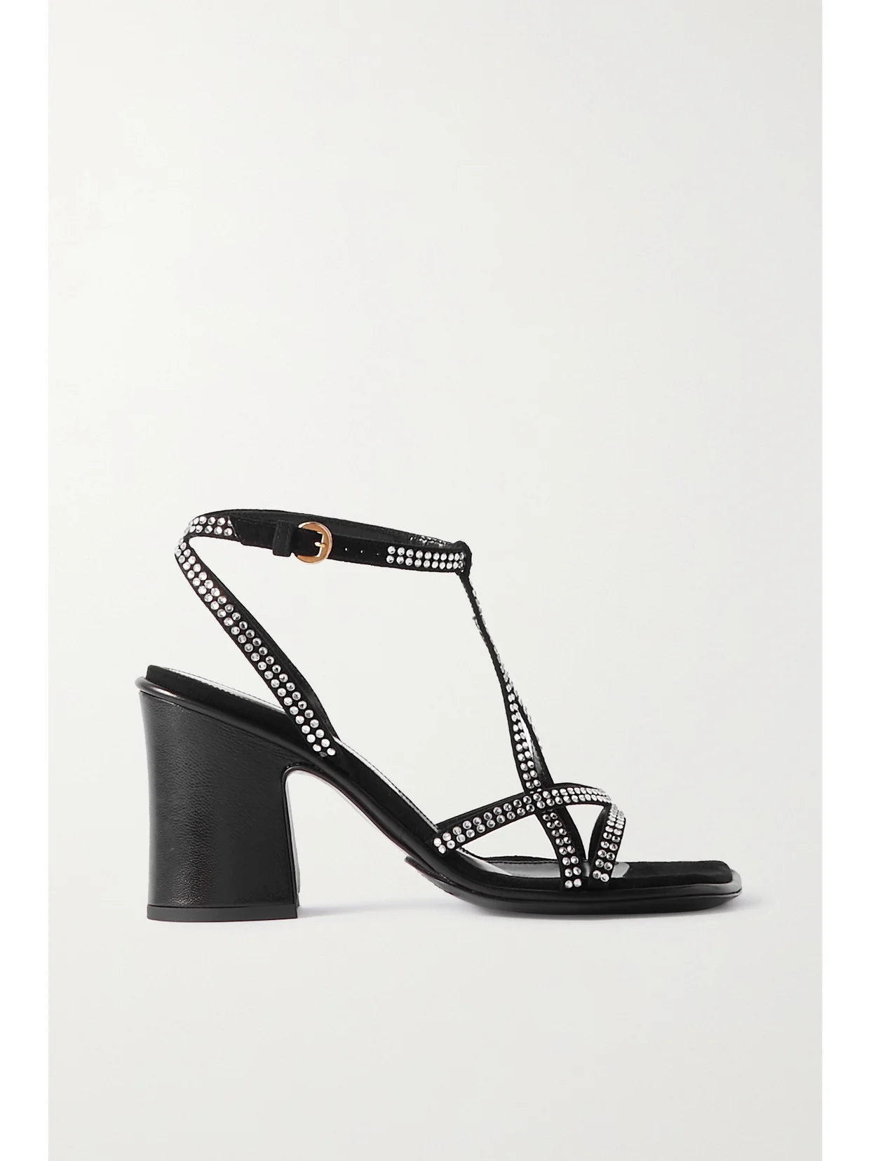 Ideal for nights out, Dries Van Noten's sandals are set on a comfortably wide heel, and shimmer prettily with crystals tracing every strap. They're made from suede with tonal leather trims along the edges.