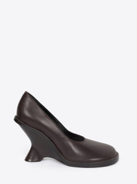 Heeled round-toe pumps in leather, with curved wedge heel. DETAILS - 100% Leather. - Round toes. Wedge heels. Slip-on. - Comes with dust bag. - Made in Italy. - Ref: 252-011720-102 SIZE AND FIT Heel measures 90 mm / 3.5 in.