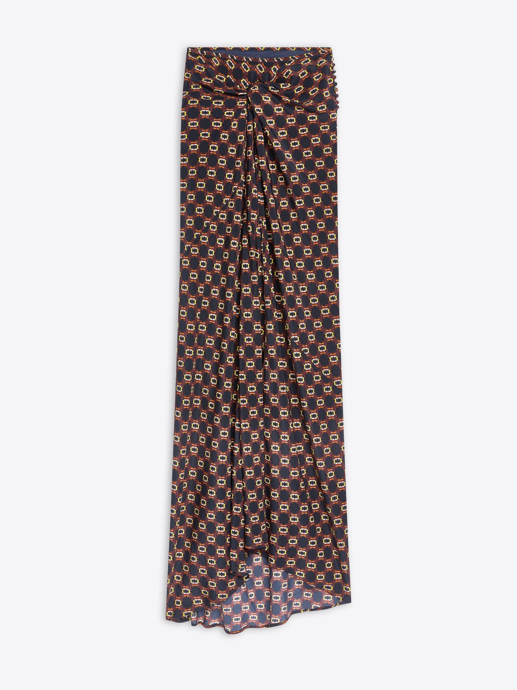 Floor-length draped skirt in silk, with front knot detail and Tie print. DETAILS - 100% Silk. - Tie print. Front knot detail. - Regular fit. Mid rise. Floor length. Draped with bias cut. Side button closure. - Ref: 252-010858-2072 SIZE AND FIT Model is 178 cm / 70 inches and wears size 34.
