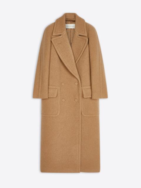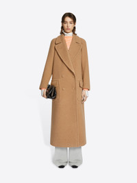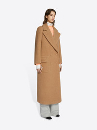 Double-breasted overcoat in brushed wool, with topstitching details. DETAILS - 100% Wool. - Regular fit. Double-breasted. Side slit and front flap pockets. Back belt. Front fabric-covered button closure. - Ref: 242-010200-9222 SIZE AND FIT Model is 178 cm / 70 inches and wears size M.