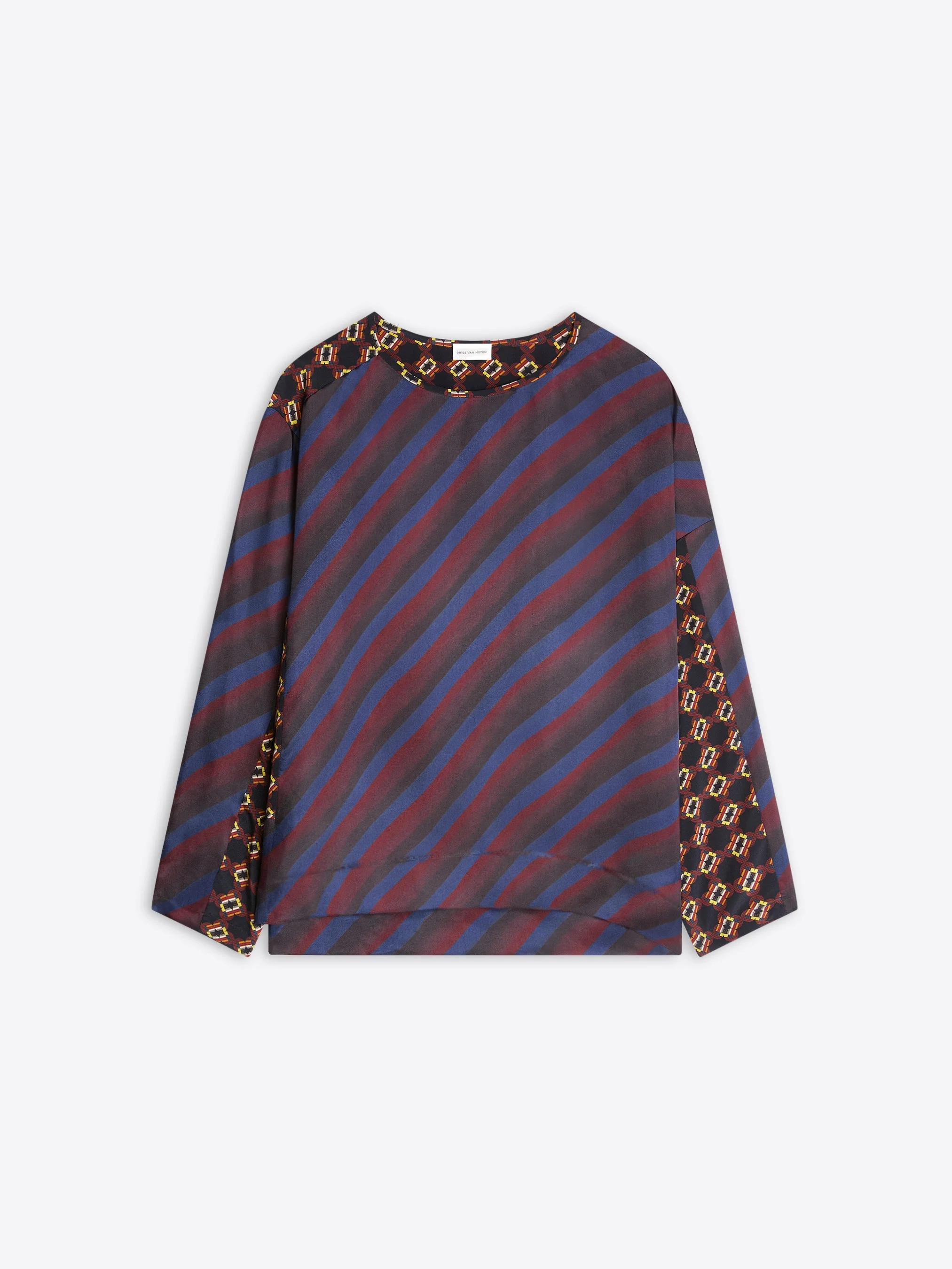 Loose fit asymmetrical top in viscose twill, with contrast panels and Tie prints. DETAILS - 50% Viscose, 50% Silk. - Contrast panels. Tie print. - Loose fit. Asymmetrical. Long sleeves. Round neckline. - Ref: 252-010722-2256 SIZE AND FIT Model is 178 cm / 70 inches and wears size 38.