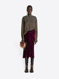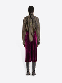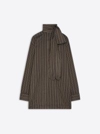Loose fit blouse with back pussy-bow collar and pleats, in striped cupro. DETAILS - 100% Cupro. - Striped pattern. - Loose fit. Back pussy-bow collar and pleats. Buttoned cuffs. - Ref: 252-010779-2267 SIZE AND FIT Model is 178 cm / 70 inches and wears size M.