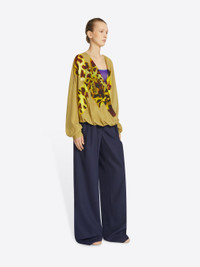 Loose fit top with draped front in viscose, with Giant placed Leopard Orchid print. DETAILS - 100% Viscose. - Giant placed Leopard Orchid print. - Loose fit. Draped front. V neckline. - Ref: 251-010715-1015 SIZE AND FIT Model is 179 cm / 70.5 inches and wears size M.
