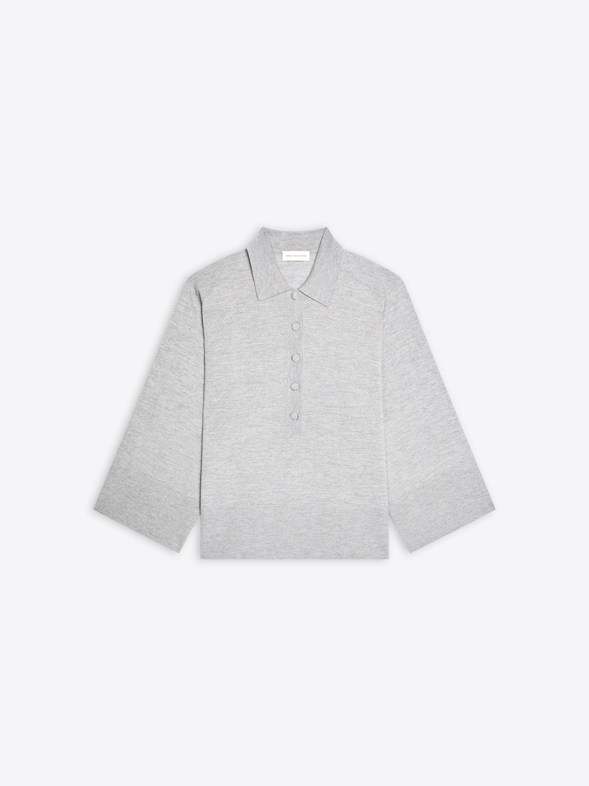 Regular fit A-line polo sweater with wide sleeves, in fine merino wool. DETAILS - 100% Merino Wool. - Loose fit. A-line. Wide long sleeves. Polo neckline. Front half-way button closure. - Ref: 261-011209-3700 SIZE AND FIT Model is 178 cm / 70 inches and wears size S.
