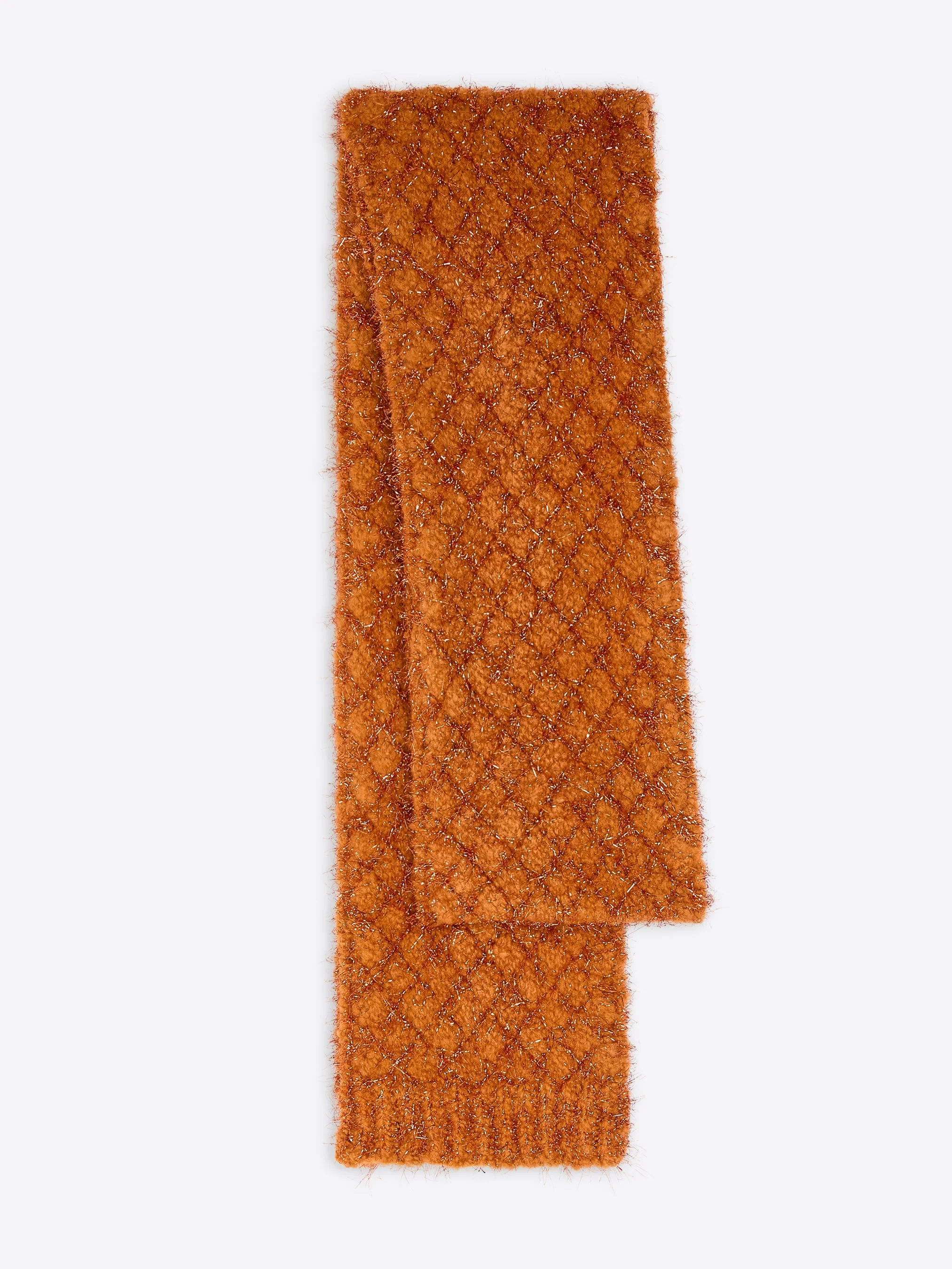 Scarf in metallized wool blend, with geometric jacquard. DETAILS - 78% Wool, 11% Polyester, 2% Nylon. - Geometric jacquard motif. - Ref: 252-111257-2735