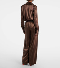 These pants from Dries Van Noten are cut from a lustrous silk-blend to a relaxed, straight silhouette. The mid-rise design features a drawstring waist for a secure and comfortable fit. Product Details - Material: 94% silk, 6% elastane - Care instructions: dry clean - Made in Tunisia - Designer color name: Brown - Item color: brown - Elasticated drawstring waist - Item number: P01092150 Size & Fit - True to size - Elasticated waist - Adjustable at the waist - Non-stretchy fabric - Wide-leg - The model seen in the picture is 178cm-5'10" and wearing a size FR 36