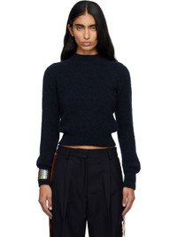 Knit alpaca- and merino wool-blend sweater. · Slim-fit · Rib-knit crewneck, hem, and cuffs · Raglan sleeves Supplier color: Navy 60% alpaca, 25% merino wool, 15% polyamide. Made in Belgium 252358F096009