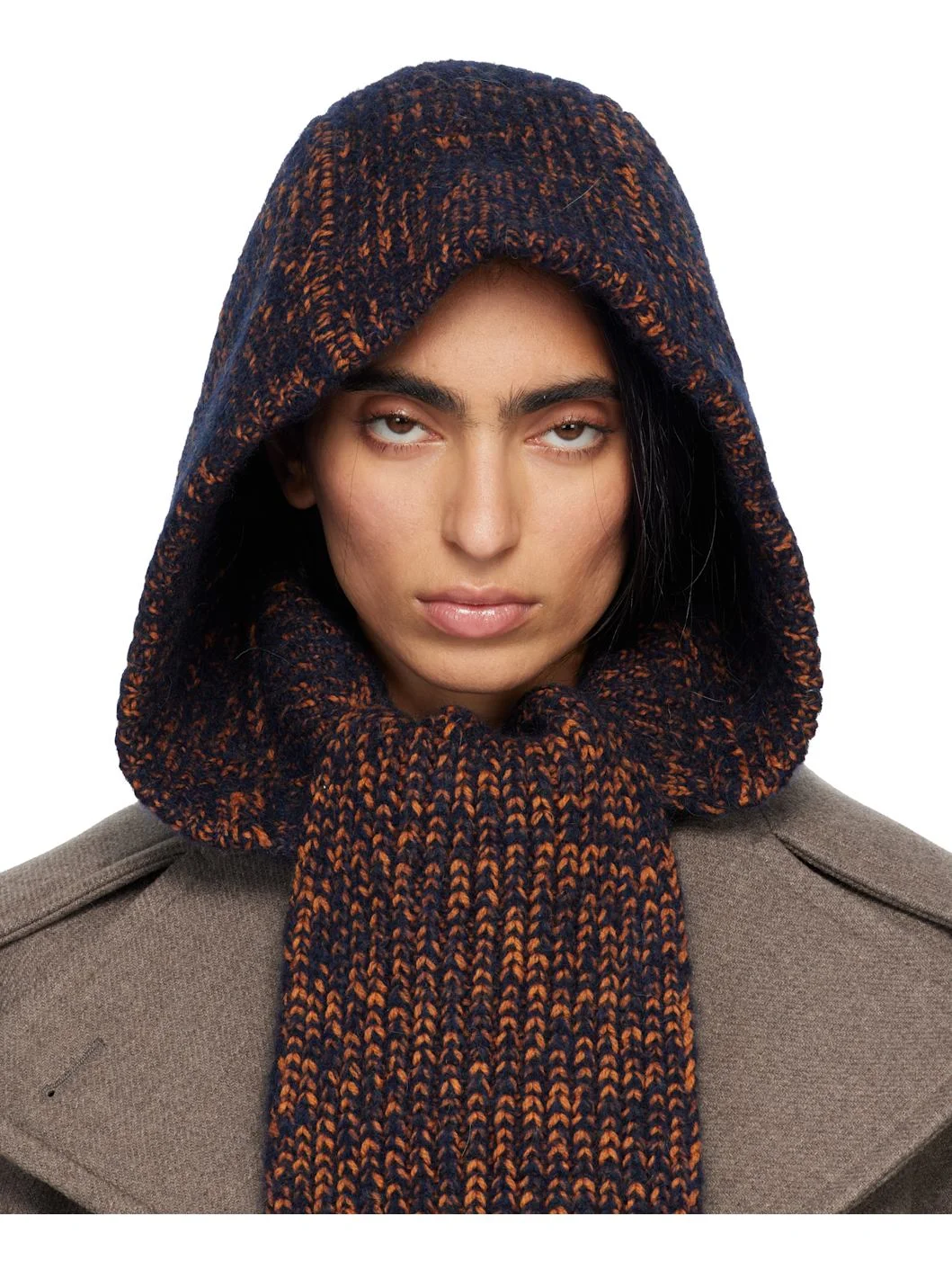 Rectangular rib-knit wool-blend scarf. · Integrated hood at length · L100" x W6" Supplier color: Navy 68% wool, 28% alpaca, 4% polyamide. Made in Belgium 252358F014001